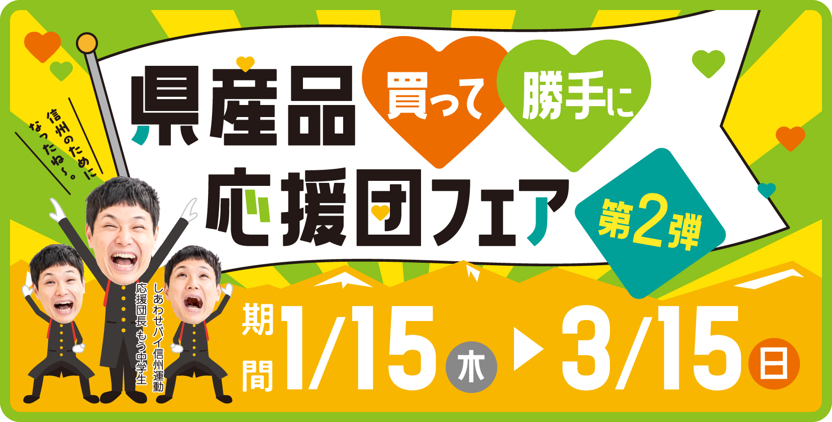 ポスター・ロゴによる消費者・従業員へのPRや県産品等の積極的な提供など、 一緒に「しあわせバイ信州運動」を盛り上げて、信州のゆたかな未来をつくりませんか?