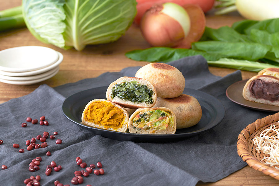 いろは堂のおやきは、野沢菜や野菜ミックスなど定番が7 種と、季節限定が3 種。創業100 周年の今年は、当店のおやきのファンを公言してくださる、南インド料理店「エリックサウス」総料理⾧で料理研究家の稲田俊輔さん監修で、特別なおやきを販売しました。
