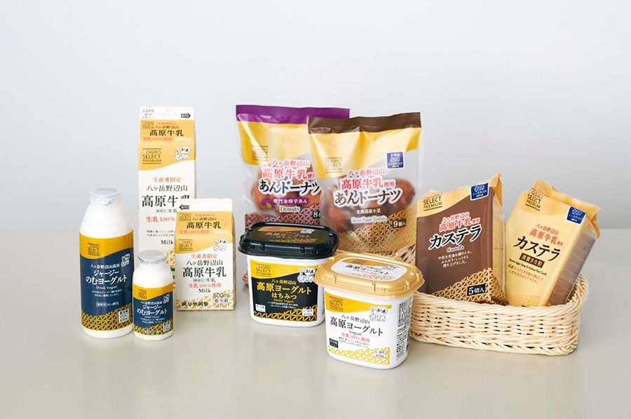 なかでも好評なのが、八ヶ岳野辺山地区の限定生産者から集乳した新鮮な生乳100%の「高原牛乳」。標高の高い野辺山高原で育った牛の牛乳は濃厚な味わいで、カフェラテやココアにしてもコクがあっておいしいのです。派生商品として、生乳100%の贅沢な「高原ヨーグルト」や、「ジャージーのむヨーグルト」なども人気です。さらに、その高原牛乳のおいしさを生かし、生地に練り込んだ「あんドーナツ」や「カステラ」なども。地域の皆様に喜んでいただける商品になったと思います。