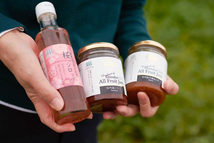 そのほか、南信州産ゆず、千曲産あんず、プルーン、桃など全7種類を展開し、いずれも生産者がきちんとわかる果物を使用しています。