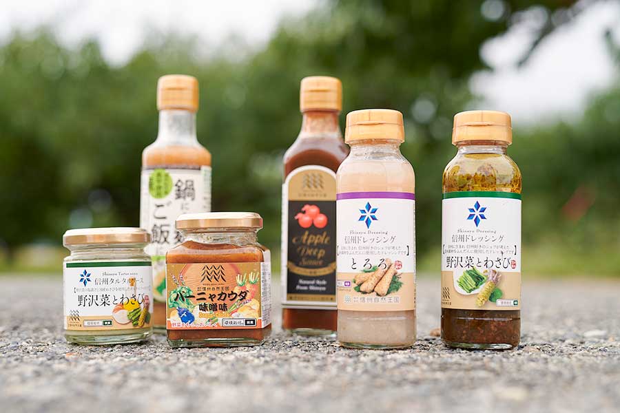 野沢菜漬けとわさびを加えた「信州タルタルソース」や、長芋とぼたんこしょうを使った「信州ドレッシング」なども展開