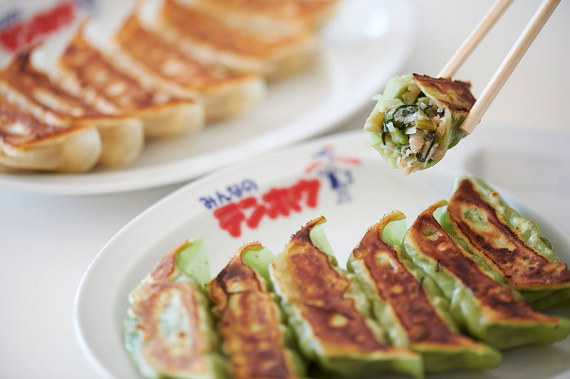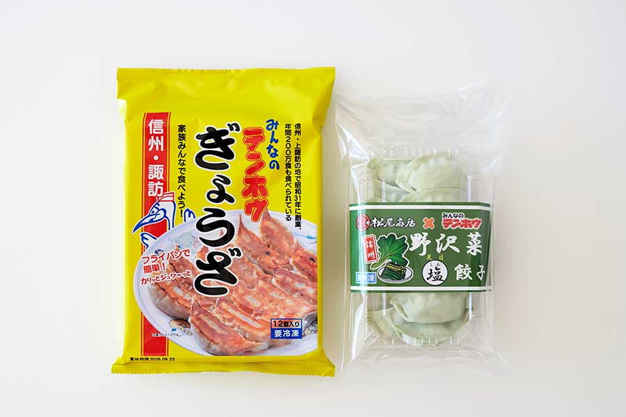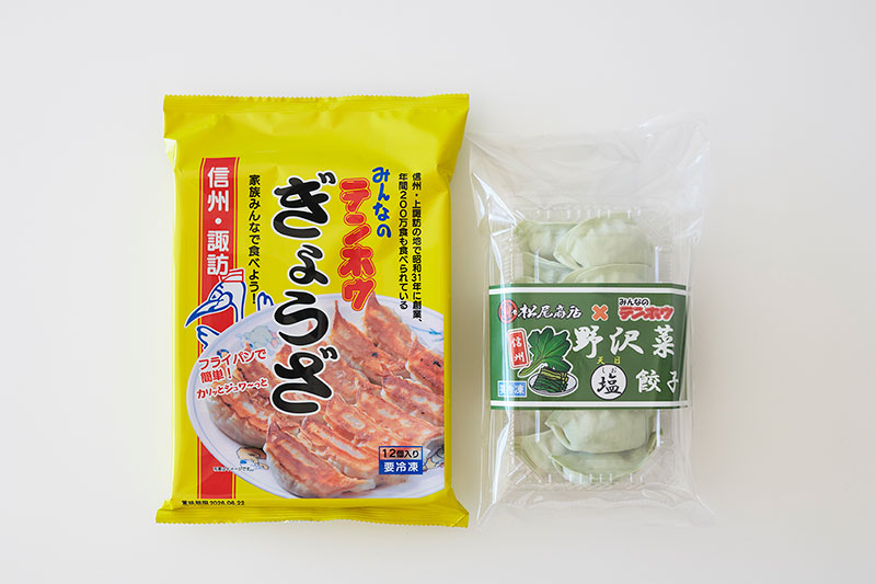 手前は、松尾商店とコラボした「野沢菜漬けぎょうざ」。